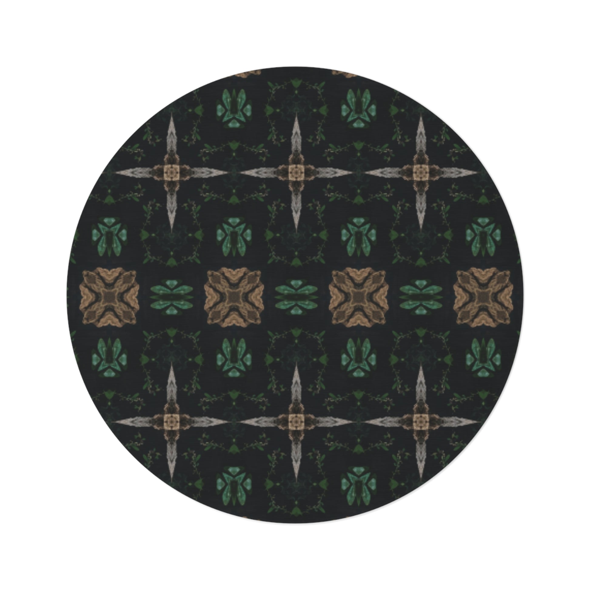 A cosy round chenille rug with a moody, nature-inspired pattern that brings warmth and texture to compact living spaces. Soft underfoot yet built to last, the muted greens and earth tones anchor a room without shouting, creating a quiet focal point for reading nooks, entryways, or layered boho interiors. The low-profile 5mm pile slips easily under furniture while the durable textured face and hemmed edges stand up to daily use. It’s the kind of piece that invites you to sit down, take off your shoes, and stay a while.
